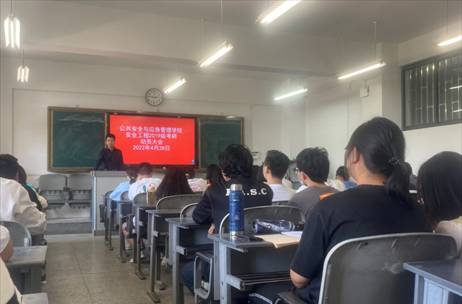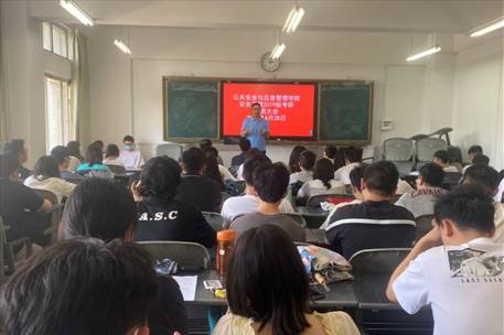 刘杰老师为同学们分析了2022年考研的趋势与政策,以安全专业的报录比为例进行分析,通过学院历年考研率及录取率鼓励同学们积极考研,明确方向与目标。