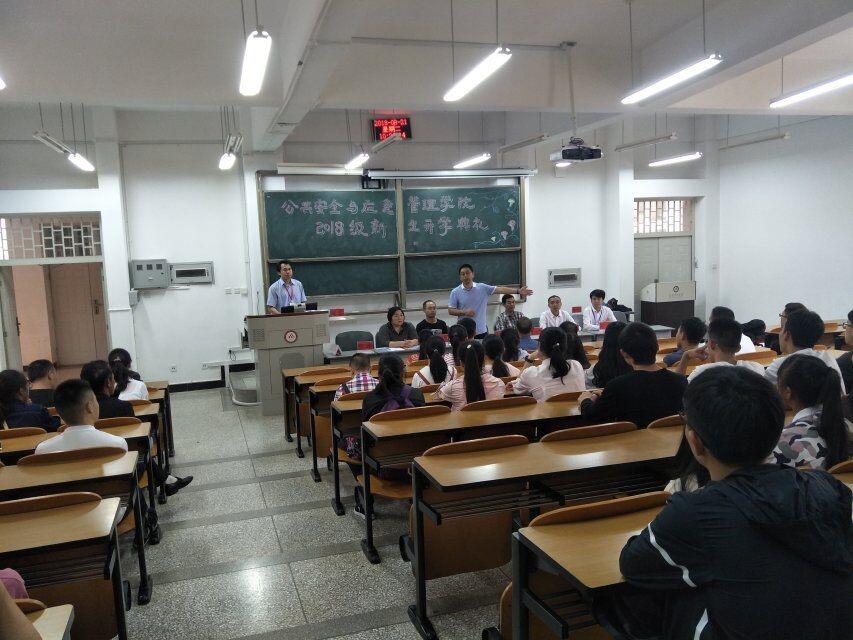 院长杨溢教授、系主任杨志全教授、办公室主任马强老师、综合办徐瑾老师、班主任刘杰老师等出席并作了发言。其中,董绍伦书记寄语各位同学加强思想理论学习,积极向党组织靠拢,努力按要求完成学业;杨溢院长向家长及新生介绍了学校、学院及学科发展情况,希望家长积极关心学生在学校的学习和生活情况,并要求各位新生在未来四年严格要求自我,按学校规定要求完成学业并成为有用之人;杨志全、马强、徐瑾等老师对新生的在校学习和生活注意事项、机构设置和办事流程等进行了介绍,让学生进一步了解校园生活和工作流程;陶忠副院长对开学典礼进行了总结,并对新生提出了具体要求。开学典礼结束后,班主任刘杰老师向学生进行了学院学科专业建设及教育,从学科介绍、师资力量、教学计划、教学课程、学科发展动态、学习方法方面进行了详细介绍。