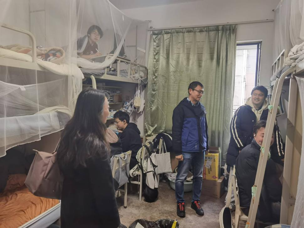 走访过程中,老师们与同学们亲切交流,关心关注同学们的生活状况和学业进展,耐心倾听同学们的心声与需求,叮嘱同学们在备考期间,应注重劳逸结合,合理规划复习时间,保证身心健康,以最佳状态迎接考试。同时,还特别提醒同学们要增强自我保护意识,注意防电信诈骗、宿舍消防安全、个人财物安全、寒假返乡交通安全,自觉遵守宿舍管理规定,共同创建安全稳定的校园环境。