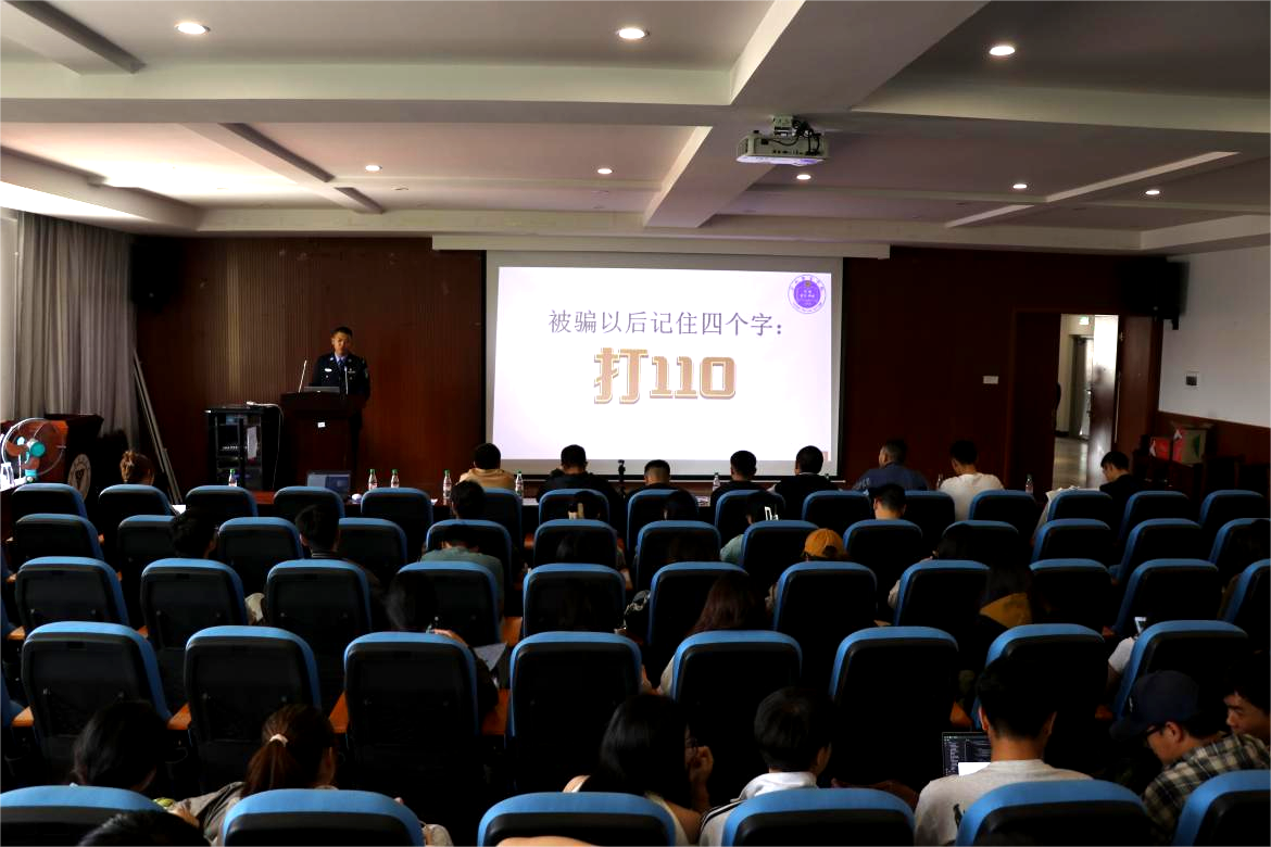 通过结合案例围绕什么是电信诈骗、大学生电信诈骗高发类型、如何识别防范电信诈骗、被骗后怎么办几个方面进行了宣讲。宣讲内容丰富、气氛活跃、语言生动幽默,通过发放国家安全宣传手册、观看警示视频、互动问答、防诈骗小口诀等方式,介绍了诈骗的主要类型、特点和警示,让师生们在欢笑声中收获了反诈知识,起到了良好的宣传效果。专题讲座结束后,还在学生社区开展了反诈知识进社区有奖知识问答的活动,进一步筑牢了校园“防诈墙”。