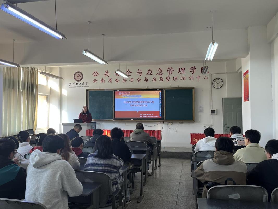 于12月12日在主楼410举办2026届考研冲刺动员会。学院党委副书记谷敏、辅导员刘申张、班主任王道航以及2026届考研学生共同参会。