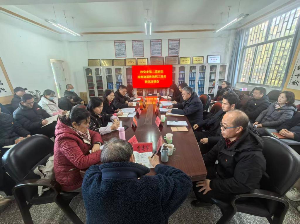 党委办公室(巡察办公室)、纪检监察处、党委组织部相关同志,第一、第二、第三巡察组全体人员,被巡察单位领导班子及教职工代表参加会议。
